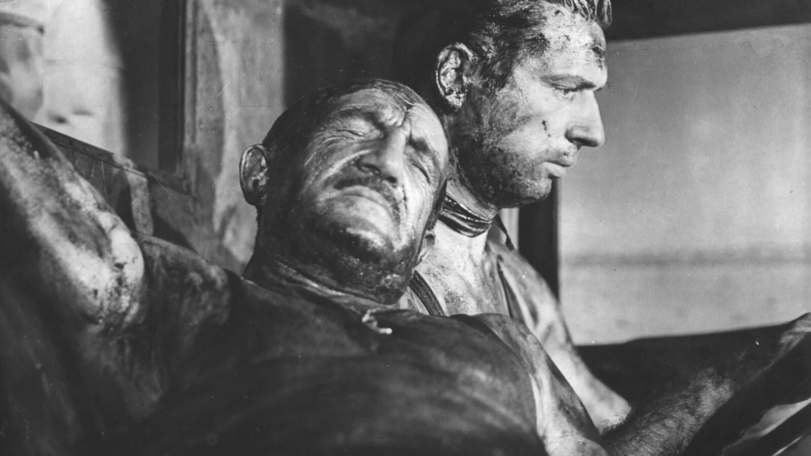 Director Henry Hathaway’s tenacious storytelling approach, including on location filming of New York City’s squalid settings, lends realism and dramatic weight to Udo’s menacing hood who winds up hell-bent on revenge against fellow arrestee turned stool pigeon Nick Bianco. As convincing as Widmark’s unnerving characterisation is, the transformative process of Nick Bianco forms the true dramatic core of Kiss of Death. Bianco has to decide between maintaining a highly valued code of honour or ratting out his fellow gang members so he can return to his two young daughters, taken to an orphanage after their mother committed suicide. It is therefore up to the actor portraying Bianco to authenticate the temperamental turbulence needed to counter Widmark’s virulently vacant killer and Victor Mature delivers an astonishing elimination match performance. Viewers can marvel at this actor’s ultra-sincere outpouring of devotion in scenes involving Coleen Gray’s equally heartfelt Nettie or during his daughters’ visitation, that vividly contrast his pent-up anxiety mixed with steely resolve during the tension bursting finale.