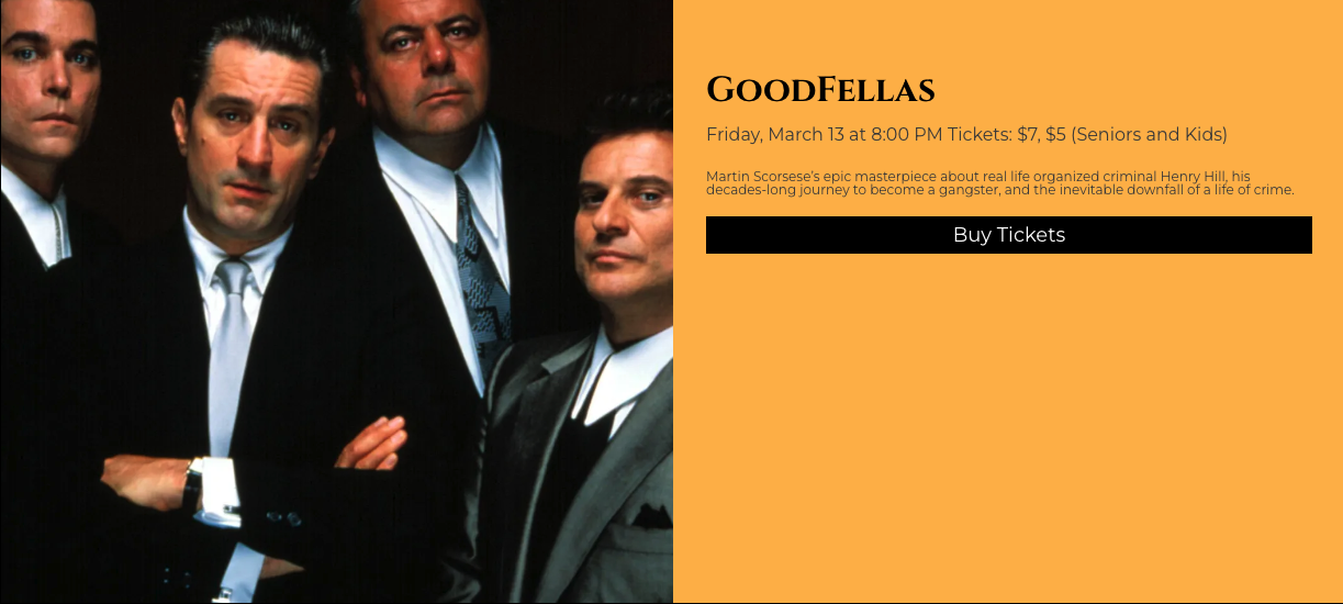 In Detroit, Michigan The Redford Theatre will present Goodfellas (1990) on Friday, March 13.