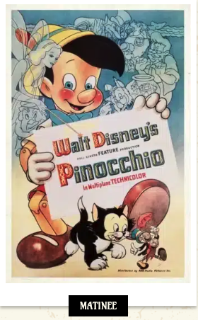 In Hollywood (part of greater Los Angeles) California, The Vista Theater will present Pinocchio (1940, an I.B. Tech 35mm print) on Saturday, April 11 and Sunday, April 12, both dates at 10 am only.